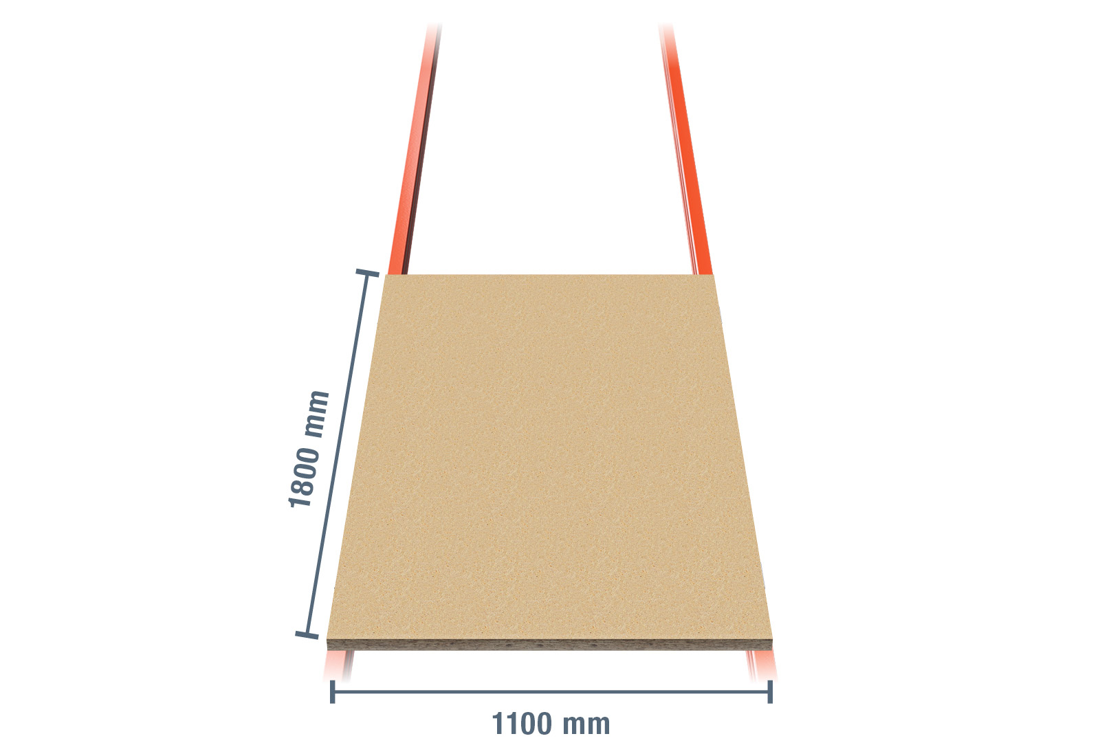 - 1 x 1.800 mm suporte de madeira para estante para paletes PR15000 / 1.100 mm profundidade / 38 mm espessura
