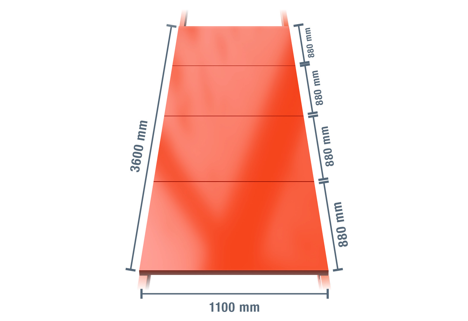 - 4 x suportes de aço 885 mm x 110 cm - carga máxima por módulo: 1.000 kg