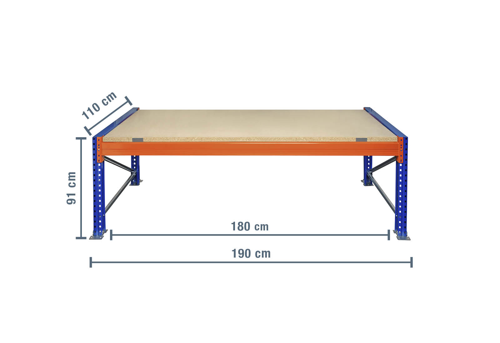 - 2 x estruturas de mesa de embalamento para estante para paletes 910 mm de altura/110 cm de profundidade