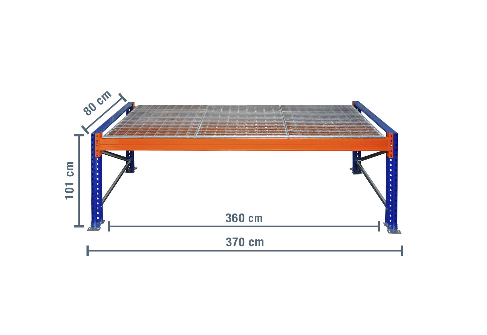 - 1 x grades para estante para paletes, 360 cm x 80 cm (4 módulos por nível)