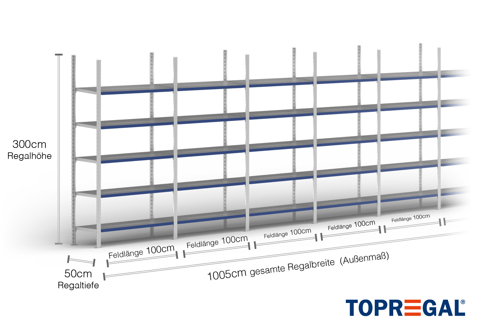 Todos os dados referem-se a cargas uniformemente distribuídas. Quando carregado, a carga de prateleira e a carga de campo não devem ser excedidas. Em princípio, as directrizes actuais sobre segurança e saúde no trabalho (Regra alemã DGUV 208-061) aplicam-se durante a utilização. A TOPREGAL não assume qualquer responsabilidade por acidentes/danos causados por uma utilização incorrecta. A nossa equipa de consultores especializados terá todo o prazer em responder a quaisquer questões que possa ter. As dimensões indicadas são aproximadas e podem divergir em alguns centímetros. Contacte-nos se necessitar das dimensões exactas do produto pretendido.