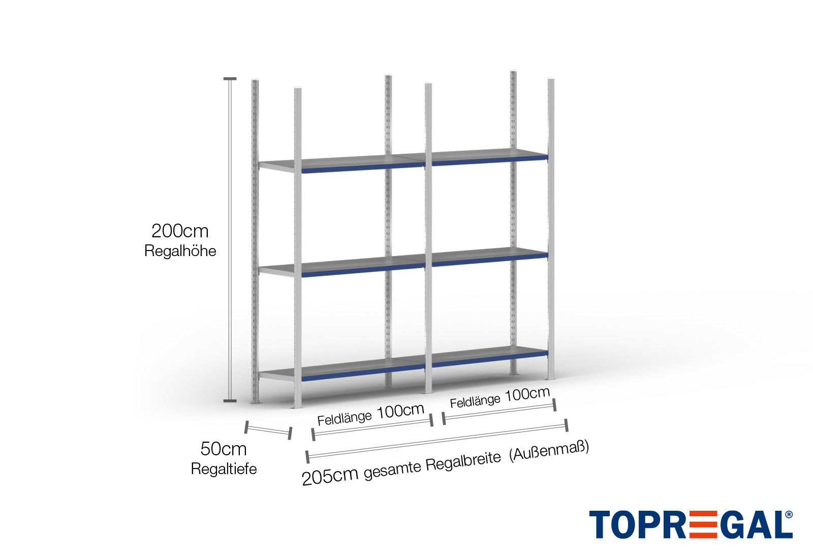 FB200 estante metálica 2 m / 50 cm profundidade / 2 m altura / 3 níveis / aço prateleiras / carga por prateleira de 200 kg
