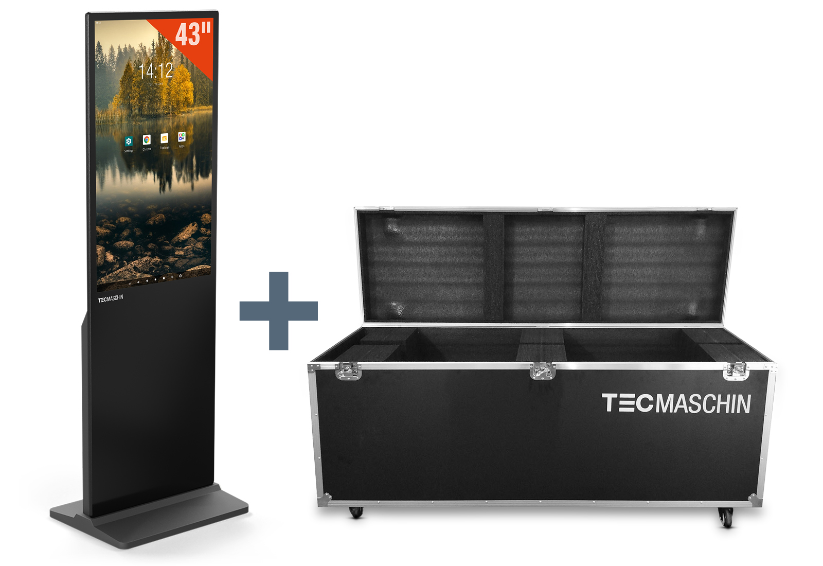 Totem digital DKS-LED43 incl. caixa de transporte, preto, 43 in Expositor, Android 11, TecMaschin