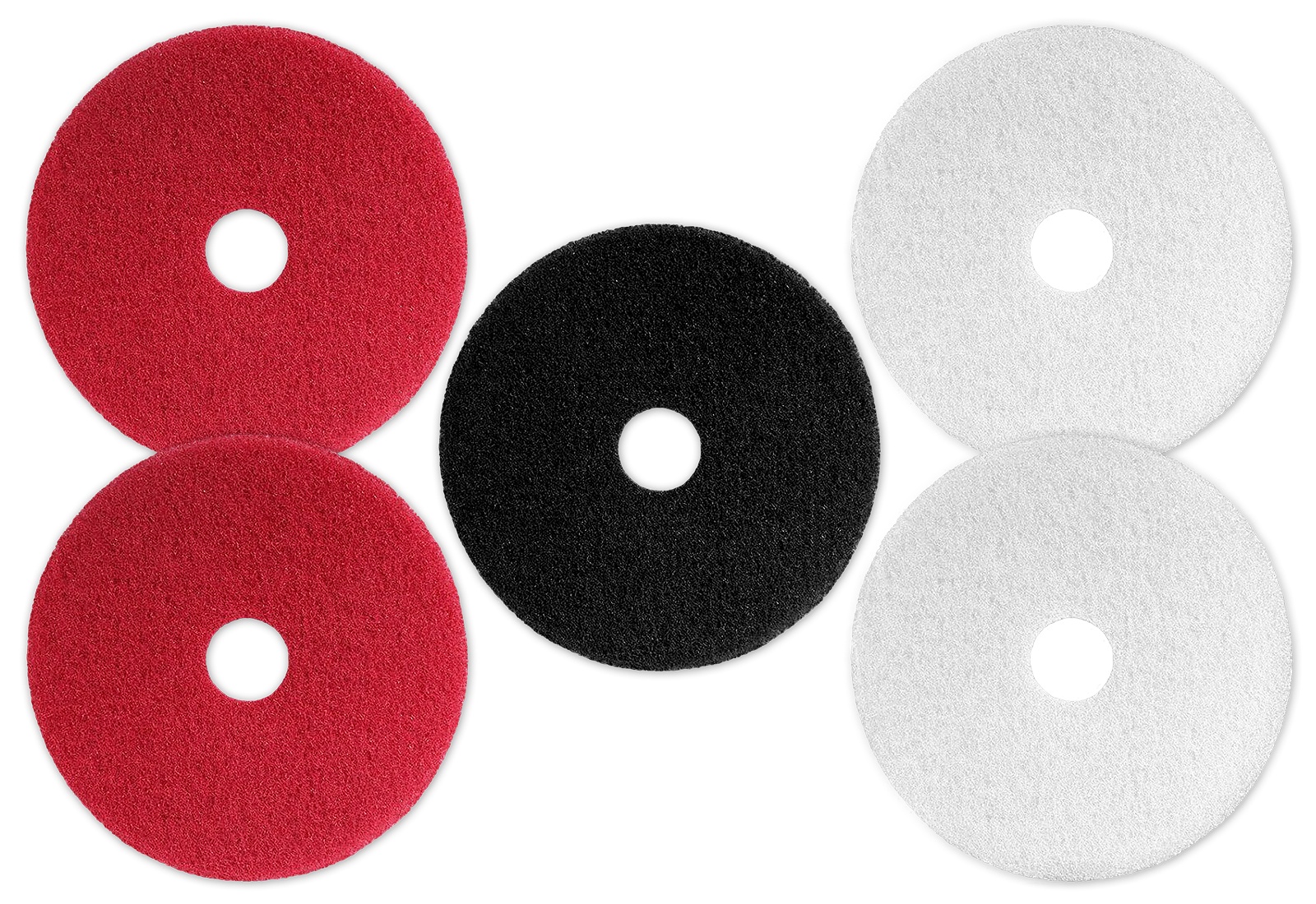 O conjunto de 5 inclui dois discos de limpeza vermelhos, dois brancos e um preto para o WM20E. Estes são adequados para diferentes condições do pavimento.