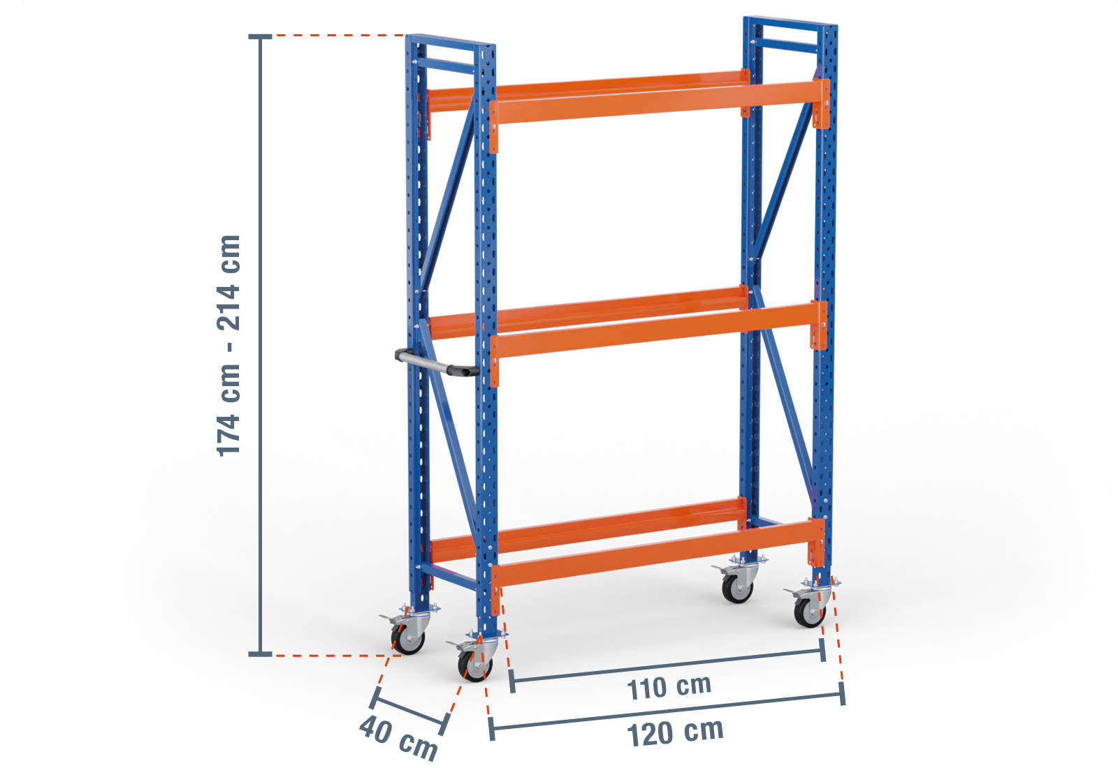 1,2 m estante móvel para pneus RR2000 / 40 cm profundidade / 1.740 - 2.140 mm altura / 3 níveis
