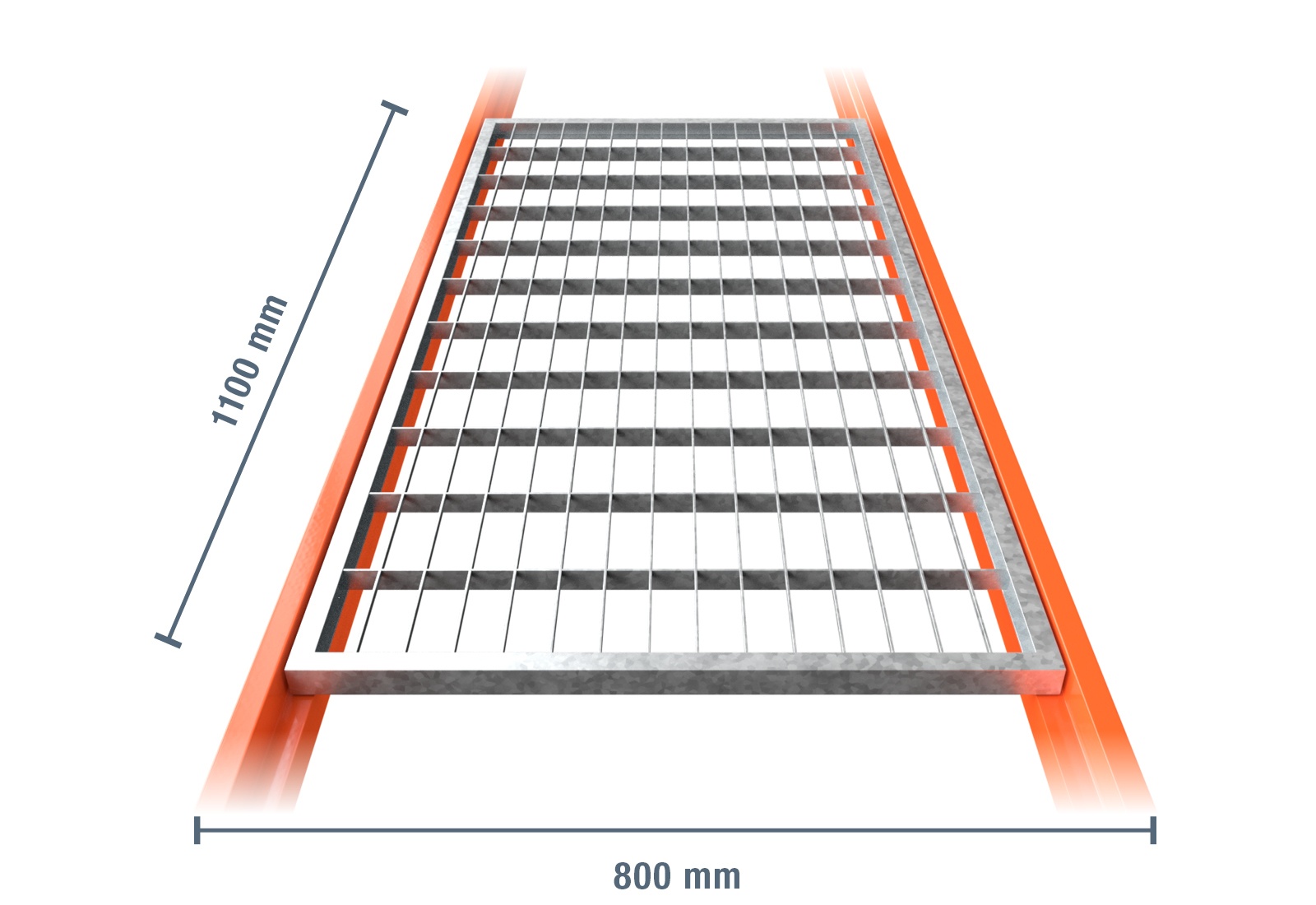 - 1 x 1.100 mm grade de aço para estante de armazenamento LR2000 / 800 mm profundidade / 25 mm altura (composto por 1 módulos)